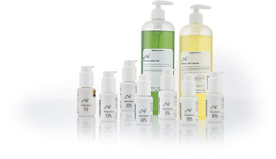 Entzündete und nicht entzündete Akne. Behandlung von alternder Haut und Falten, Pigmentationen, Psoriasis, Rosacea und Folliculitis.